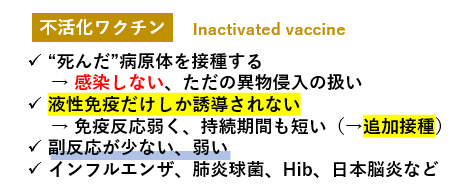 ちなみに、インフルエンザワクチンなどに使われる不活化ワクチンでは細胞性免疫はうまく誘導できず、mRNAワクチンや生ワクチンでは”感染疑似体験”でき、細胞性免疫が誘導されます。