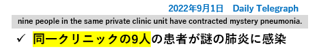 タイトルによると、謎の肺炎に9人感染し、3人が死亡したそうです。うむ、致死率高いですね。