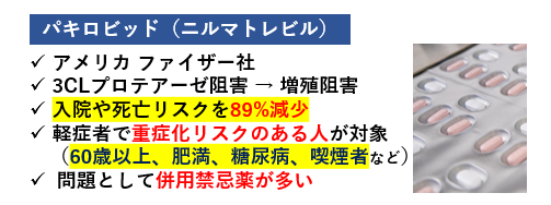 一方で、新型コロナウイルスについてはどうでしょうか?この冬から2つの抗ウイルス薬(内服薬)が使われるようになっています。