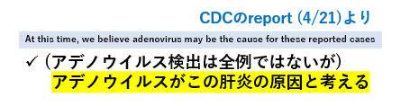 つまり、本質はCDCと同じく、アデノウイルスによる感染症と考えています。