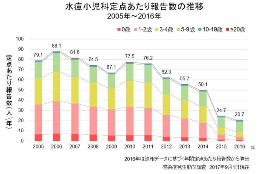 2014年から子供の水痘ワクチンの定期接種が開始したのです。これにより水痘になる子供が減少しました。