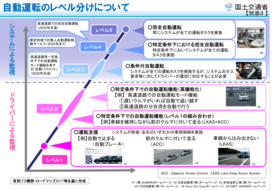 0というのは普通の手動運転で、5が完全な自動運転という風になっています。