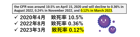 最初に覚えた、インフルエンザの致死率が0.12%でした。その数値になるのが、予測では2023年の3月ということです。