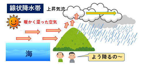 線状降水帯と聞けば、とりあえずゲリラ豪雨みたいなイメージはあると思います。